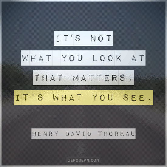When I first read Thoreau, this quote, I think, “Of course it’s not what we look at that matters! It’s what we have been sociologically conditioned to see! We see only what our lenses allow us to see!”